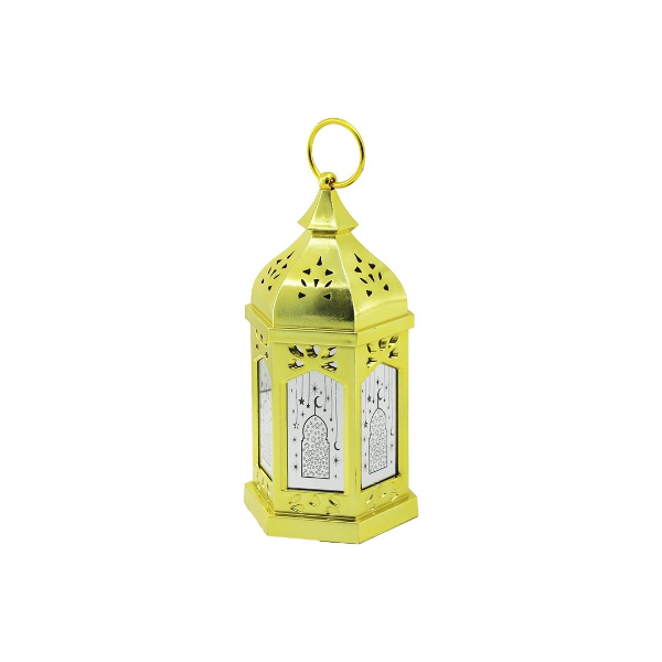 RAMAZAN TEMALI BÜYÜK BOY ALTIGEN KUBBE LED LAMBAÜrün Özellikleri Ramazan Temalı Büyük Boy Altıgen Kubbe LED Lamba, Ramazan ayının manevi atmosferini yaşam alanlarına taşıyan şık ve dikkat çekici bir dekoratif aydınlatma ürünüdür. Altıgen gövde yapısı ve kubbeli üst tasarımı, klasik Ramazan fenerlerinden ilham alınarak hazırlanmış olup geleneksel estetiği modern detaylarla birleştirir. Gold renkli dış yüzeyi, ışık yandığında ortama sıcak ve huzurlu bir ambiyans kazandırırken, üzerindeki desenli paneller LED ışığın yumuşak şekilde yayılmasını sağlar. Plastik malzemeden üretilmiş olması sayesinde hafif, dayanıklı ve uzun ömürlü kullanım sunar. Pilli çalışma özelliği sayesinde priz veya kabloya ihtiyaç duymadan istenilen her alanda rahatlıkla kullanılabilir. Masa üstü, vitrin, pencere önü, raf, iftar sofrası ve Ramazan süslemeleri için ideal bir dekoratif tamamlayıcıdır. Evlerin yanı sıra kafe, restoran, ofis ve organizasyon alanlarında Ramazan ruhunu yansıtan estetik bir dokunuş sunar. Düşük enerji tüketimli LED yapısı sayesinde Ramazan ayı boyunca güvenle ve uzun süre kullanılabilir. Paket İçeriği 1 adet Ramazan Temalı Büyük Boy Altıgen Kubbe LED Lamba