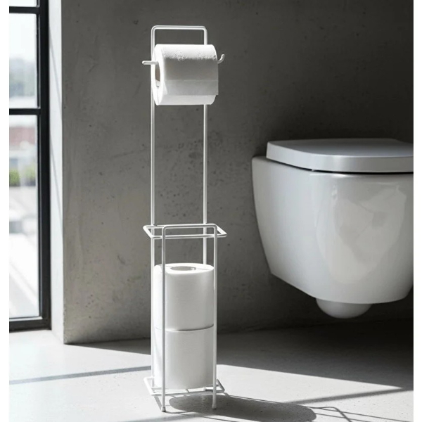 Beyaz Standlı Yedek Hazneli Tuvalet Kağıtlığı