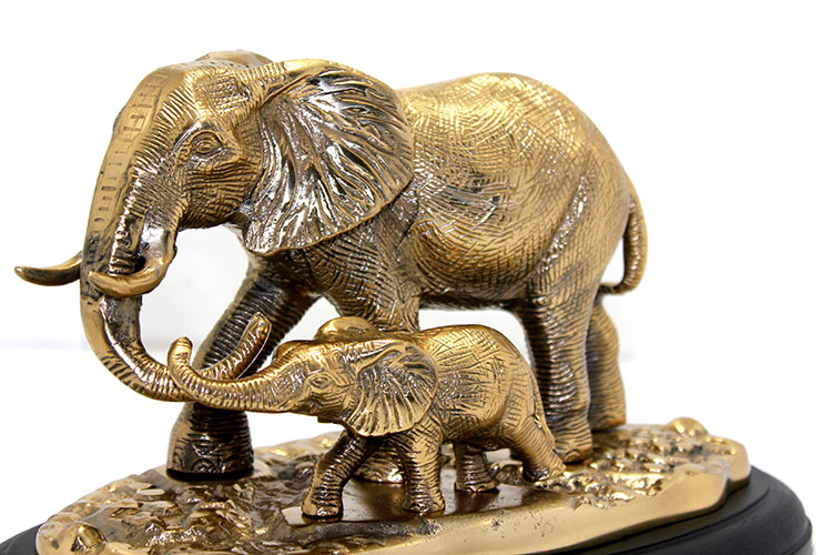 PİRİNÇ FİL BİBLOSU Ürün Özellikleri Pirinç malzemeden üretilmiş bu zarif fil bibloları, büyüleyici bir tasarıma sahip olup, anne ve yavru fili simgelemektedir. 35x20 cm boyutunda olan bu obje, altın rengiyle zarif bir görünüm sunar. Hem evde hem ofiste şık bir dekorasyon parçası olarak kullanılabilir. Fil figürü, sevgi ve bağlılık sembolü olarak popüler bir koleksiyonluk parça olmasının yanı sıra, hediye olarak da oldukça idealdir. Paket İçeriği 1 Adet Pirinç Fil Biblosu