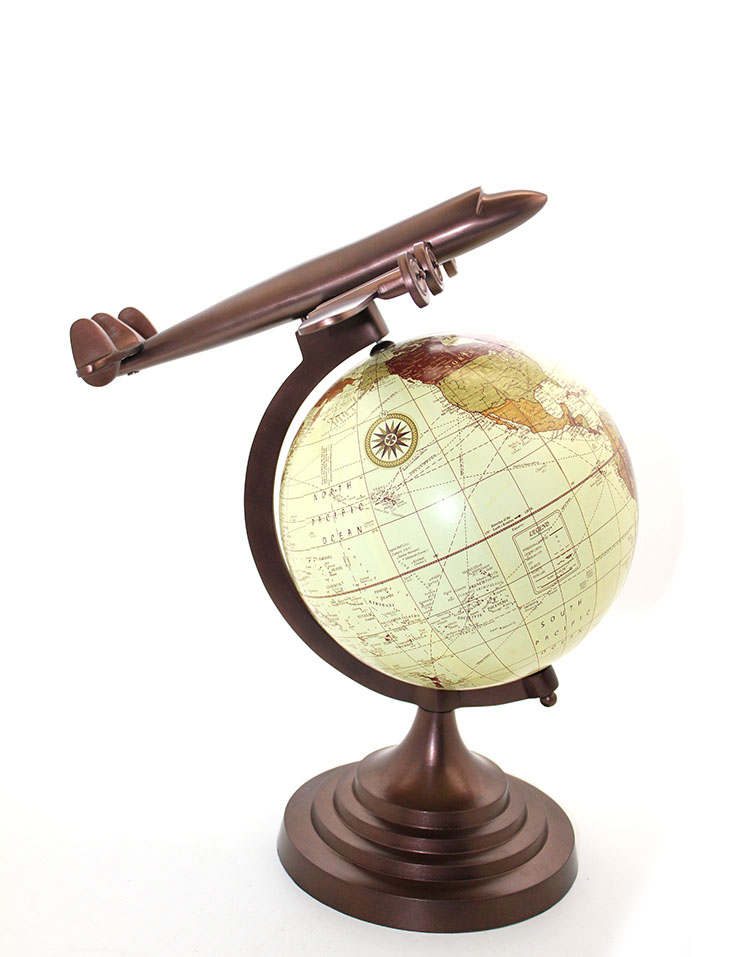 40x25 cm Pirinç Uçak Tasarımlı Dünya Küre