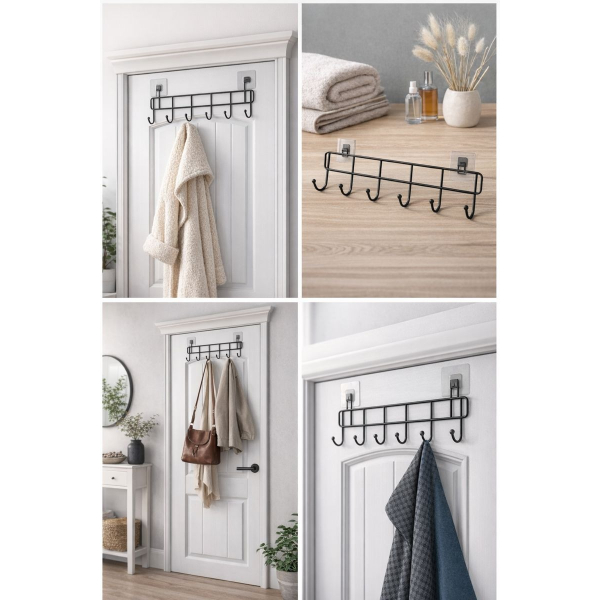 6'lı Yapışkanlı Kapı Arkası Askı