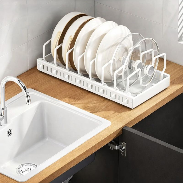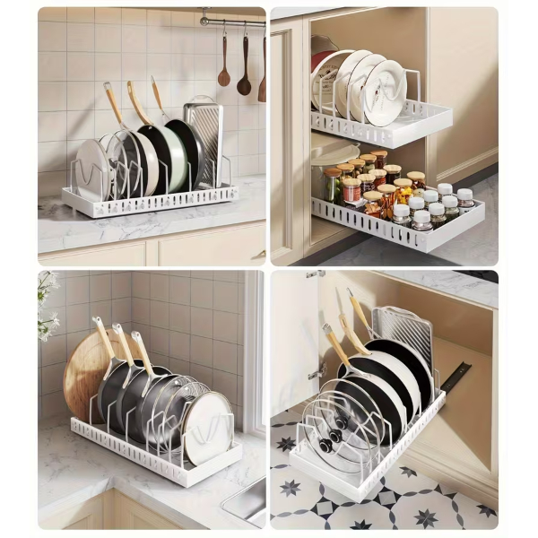 Beyaz Renk Teleskopik Raylı Tava Tencere Organizeri