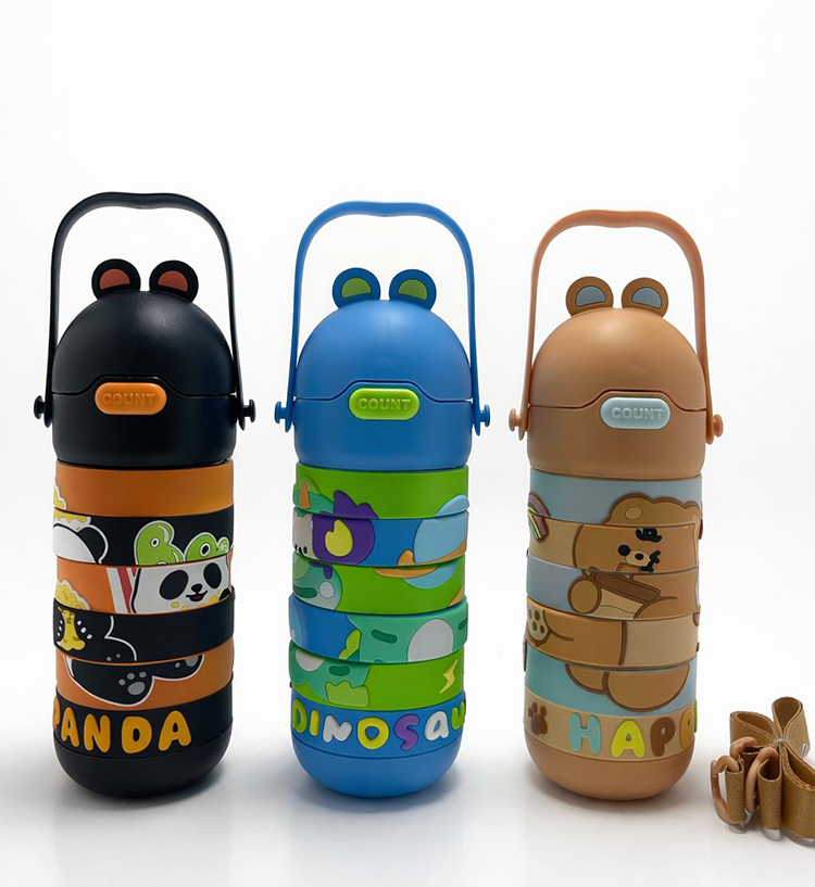 Yapboz Tasarımlı Çocuk Termosu - Paslanmaz Çelik Pipetli Ve Askılı Matara Alk4653