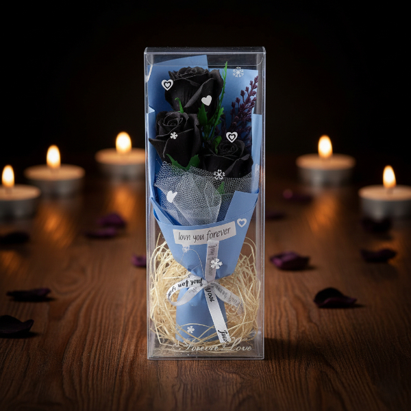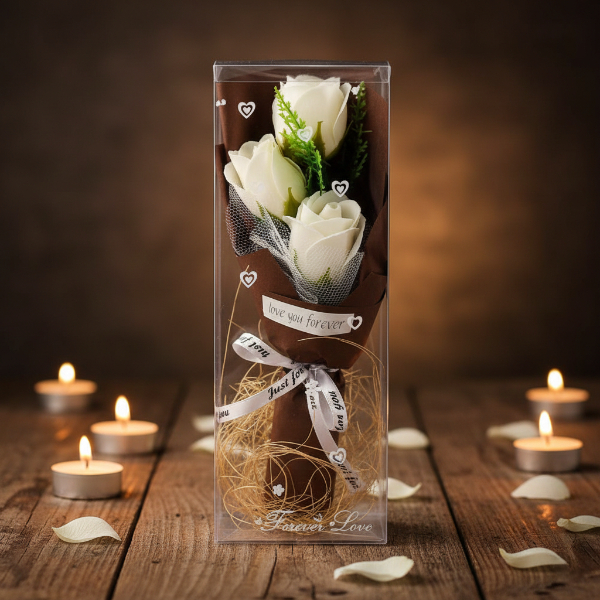 Şeffaf Kutulu Üç Gül Buketi