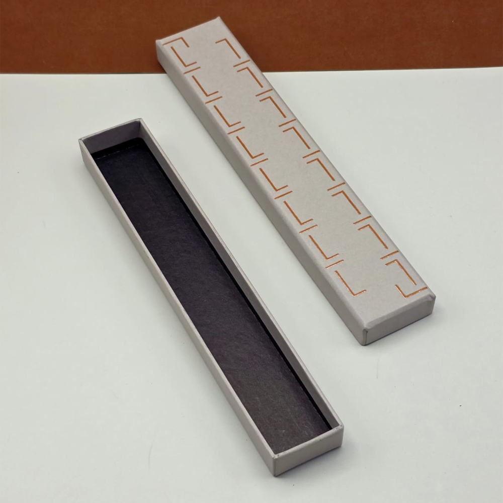 DESENLİ MUKAVVA TESBİH KUTUSU  Ürün Özellikleri Değerli tesbihlerinize hak ettiği sunumu yapın! Desenli Mukavva Tesbih Kutusu, hem koruyucu yapısı hem de estetik tasarımıyla hediyeleşme sürecini daha özel kılar. 21x4 cm boyutlarındaki ideal formuyla her türlü standart tesbih modeli için tam uyum sağlar. Yüksek kaliteli ve sert mukavva malzemeden üretilen gövdesi, dış etkenlere karşı dayanıklıdır ve formunu uzun süre korur. Kutunun yüzey yapısı baskı ve özelleştirme çalışmalarına uygun olup; isim, logo veya özel notlarınızı ekleyerek kişiye özel bir hediye kutusuna dönüştürülebilir. Modern desenli dış yüzeyi ve şık iç tasarımıyla koleksiyoncular, tesbih tutkunları ve özel gün hediyeleri için prestijli bir paketleme çözümüdür. Ürün Teknik Özellikleri Özellik Açıklama Boyutlar 21 cm (Uzunluk) x 4 cm (Genişlik) Malzeme Birinci Sınıf Sert Mukavva Tasarım Modern Desenli Dış Yüzey Baskı Uygunluğu Evet (Kutu üzerine logo/isim baskısı yapılabilir) Kullanım Alanı Tesbih Sunumu, Bileklik Kutusu, Hediyelik Paketleme İç Yapı Tesbih Formuna Uygun Dar ve Uzun Tasarım Paket İçeriği 1 Adet Desenli Mukavva Tesbih Kutusu (21x4 cm).