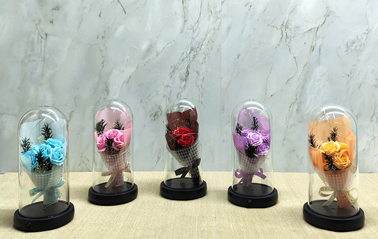 Işıklı Müzikli Fanus içinde Gül Buketi