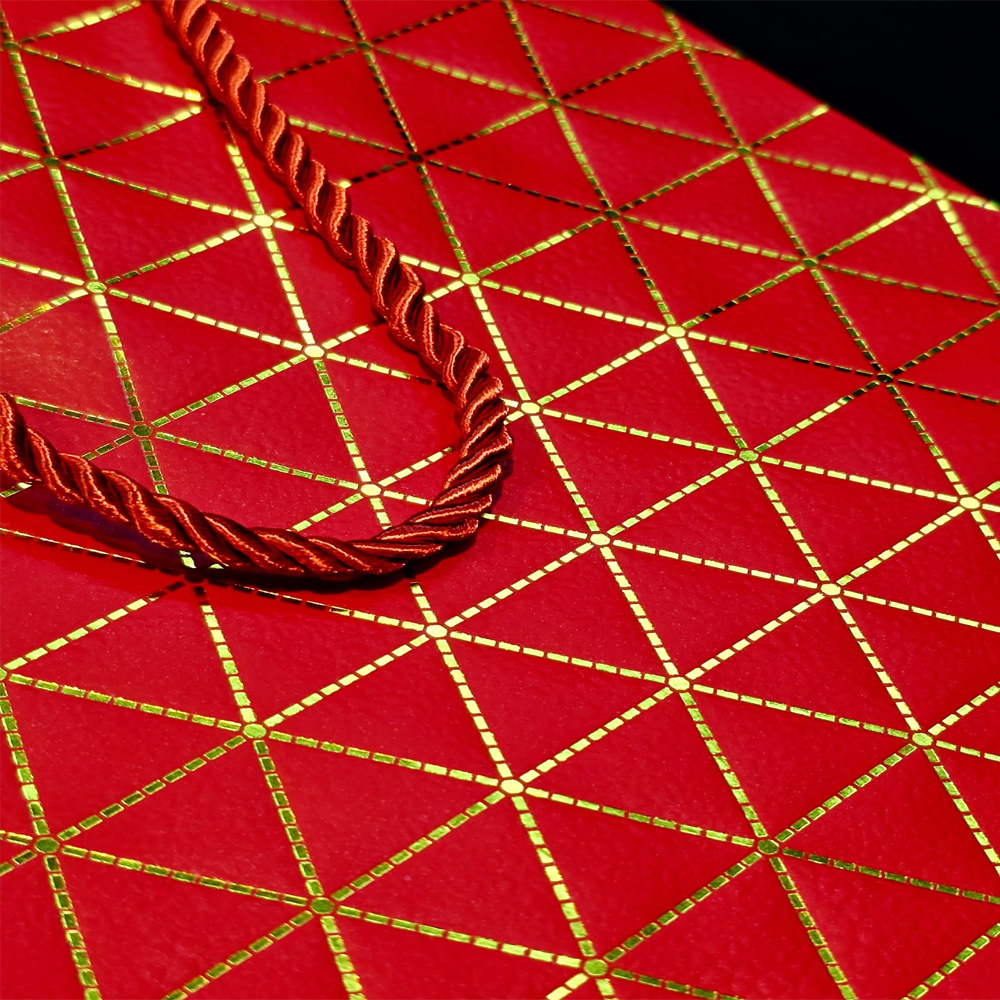 Kırmızı Geometrik Desenli Mini Boy Karton Hediye Çantası