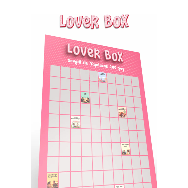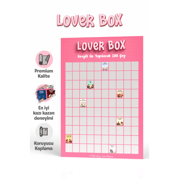 SEVGİLİ İLE YAPILACAK 100 ŞEY - KAZI KAZAN POSTERİ Ürün Özellikleri Sevgili ile Yapılacak 100 Şey Kazı Kazan Posteri, ilişkinize heyecan katmak ve birlikte unutulmaz anılar biriktirmek için tasarlanmış romantik bir rehberdir. "Aşkı kazı, anı kazan!" mottosuyla yola çıkan bu interaktif poster, çiftlerin birlikte deneyimleyebileceği en özel aktiviteleri tek bir tabloda sunar. Premium kalitede kağıt üzerine uygulanan özel koruyucu kaplama sayesinde, kazıma işlemi son derece pürüzsüzdür ve altındaki renkli illüstrasyonlar her zaman canlı kalır. Romantik akşam yemeklerinden macera dolu gezilere kadar 100 farklı görevi tamamladıkça gümüş katmanı kazıyabilir ve ilişkinizin gelişimini görsel bir şölene dönüştürebilirsiniz. Pembe tonlarındaki şık tasarımıyla yatak odanızın veya oturma odanızın duvarında estetik bir dekoratif tablo olarak yerini alacak olan bu poster, monotonluktan uzaklaşmak isteyen çiftler için mükemmel bir motivasyon kaynağıdır. Sevgililer Günü, yıl dönümü veya doğum günleri gibi özel anlarda sevdiğinize verebileceğiniz en anlamlı ve kalıcı hediyelik poster seçeneklerinden biridir. Ürün Teknik Özellikleri Özellik Açıklama Ürün Adı Sevgili ile Yapılacak 100 Şey - Kazı Kazan Posteri (Lover Box) İçerik Çiftler İçin Hazırlanmış 100 Romantik ve Eğlenceli Görev Materyal Premium Kalite Mat Kuşe Kağıt Kaplama Koruyucu Özel Katman ve Kolay Kazınabilir Gümüş Yüzey Tasarım Lover Box Temalı, Pembe Romantik İllüstrasyonlar Fonksiyon İlişki Güçlendirici, Dekoratif ve İnteraktif Anı Listesi Hediye Konsepti Sevgililer Günü, Yıl Dönümü, Yeni Ev Hediyesi Paket İçeriği 1 Adet Sevgili ile Yapılacak 100 Şey Kazı Kazan Posteri