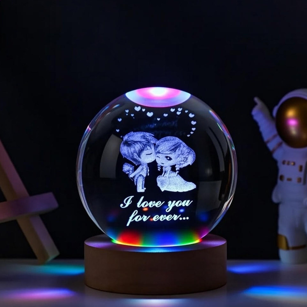 Sevgililer Temalı Işıklı Cam Küre Ve Işıklı Kristal Anahtarlık Hediye Seti