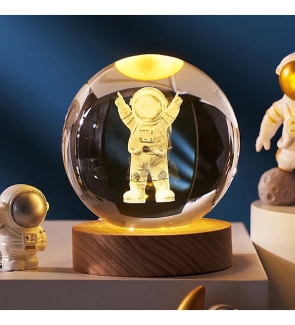 Mutlu Astronot Tasarımlı Işıklı Cam Küre