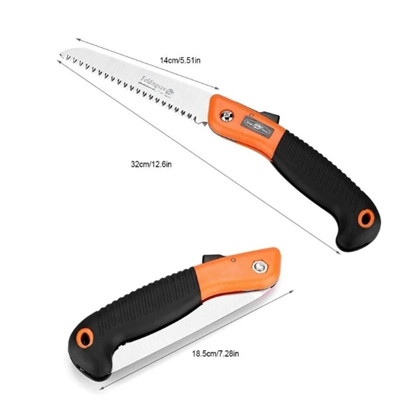 KATLANIR EL TESTERESİ Ürün Özellikleri Bahçe işlerinden kamp maceralarına kadar her alanda en güçlü yardımcınız! Profesyonel Katlanır El Testeresi, ışıl işlem görmüş yüksek karbon çelik bıçağı sayesinde üstün keskinlik ve dayanıklılık sunar. 180 mm uzunluğundaki özel diş yapısı, ağaç dallarını, odunları ve plastik boruları minimum eforla hızlıca kesmenize olanak tanır. Yumuşak çift plastik sap (soft-grip) tasarımı, elinize tam oturarak kaymayı önler ve uzun süreli kullanımlarda bile konfor sağlar. Güvenli kilit mekanizması sayesinde bıçak açık konumdayken sabitlenir, kapalı konumdayken ise kompakt yapısı sayesinde cebinizde veya çantanızda güvenle taşınabilir. 32 cm toplam uzunluğu ile ideal bir kaldıraç gücü sağlayan bu testere, budama işlerinde ve outdoor etkinliklerde profesyonel sonuçlar almak isteyenler için tasarlanmıştır. Paslanmaya karşı dirençli yapısı ve körelmeye dayanıklı sertleştirilmiş dişleri ile uzun yıllar performansından ödün vermez. Ürün Teknik Özellikleri Özellik Açıklama Bıçak Uzunluğu 180 mm (18 cm) Kapalı Uzunluk 18.5 cm (Kompakt Taşıma) Toplam Uzunluk 32 cm (Açık Konum) Malzeme Işıl İşlemli Yüksek Karbon Çelik Sap Yapısı Yumuşak Kaymaz Çift Plastik Sap Kilit Sistemi Emniyetli Açma/Kapama Kilidi Kullanım Alanı Bahçe Budama, Kamp, Avcılık, Marangozluk Paket İçeriği 1 Adet 180 mm Katlanır El Testeresi