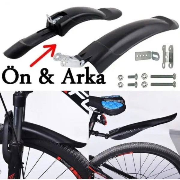 ÖN VE ARKA BİSİKLET ÇAMURLUK SETİ  Ürün Özellikleri Yağmurlu havalarda ve çamurlu yollarda sürüş keyfiniz yarıda kalmasın! Ön ve Arka Bisiklet Çamurluk Seti, sizi ve bisikletinizi su sıçramalarına, çamura ve küçük taşlara karşı etkin bir şekilde korur. Yüksek kaliteli esnek plastik malzemeden üretilen çamurluklar, darbelere karşı dayanıklı olmasının yanı sıra hafif yapısıyla bisikletinize ek yük bindirmez. Aerodinamik tasarımı sayesinde rüzgar direncini minimuma indirirken, siyah mat kaplamasıyla her türlü bisiklet modeline şık ve sportif bir görünüm katar. Dağ bisikleti (MTB), şehir bisikleti ve yol bisikletleri ile uyumlu olan bu set, kutu içeriğinde yer alan metal bağlantı aparatları ve vidaları sayesinde saniyeler içinde kolayca monte edilebilir. Hem ön hem de arka tekerlek için tam koruma sağlayan bu set, dört mevsim sürüş konforunuzu artırır. Ürün Teknik Özellikleri Özellik Açıklama Set İçeriği 1 Adet Ön Çamurluk & 1 Adet Arka Çamurluk Malzeme Kırılmaya Dayanıklı, Esnek Polipropilen Plastik Uyumluluk 20", 24", 26", 27.5" ve 29" Jant Bisikletler Montaj Vida ve Metal Bağlantı Aparatları Dahil (Kolay Kurulum) Renk Siyah Tasarım Geniş Açılı Koruma ve Aerodinamik Form Avantajı Hafif Yapı, Kir Tutmayan Yüzey, Uzun Ömürlü Kullanım Paket İçeriği 1 Adet Ön Çamurluk, 1 Adet Arka Çamurluk, Montaj Vida ve Aparat Seti.