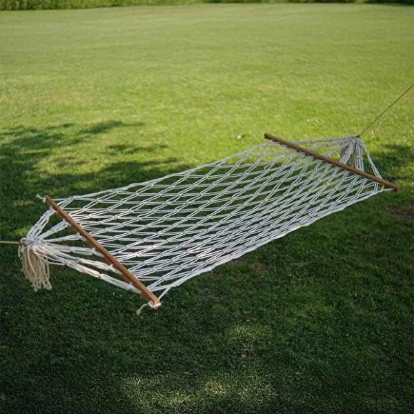 EKO İP TEK KİŞİLİK HAMAK  Ürün Özellikleri Doğanın kucağında huzurlu bir mola vermeye hazır mısınız? Eko İp Tek Kişilik Hamak, bahçenizde, balkonunuzda veya kamp maceralarınızda size eşlik edecek en pratik dinlenme çözümüdür. Dayanıklı ve esnek ip örgü yapısı sayesinde vücut şeklinizi alarak konforlu bir uzanma deneyimi sunar. 80 kg taşıma kapasitesi ile tek kişinin kullanımı için idealdir. Uç kısımlarında yer alan ahşap destek çıtaları, hamağın dolaşmasını engeller ve gergin durmasını sağlayarak güvenli bir kullanım sunar. Hafif yapısı sayesinde çantanızda kolayca taşıyabilir, iki ağaç veya direk arasına saniyeler içinde kurabilirsiniz. Ekonomik fiyatı ve dayanıklı örgü sistemiyle açık hava keyfinizi bir üst seviyeye taşıyacak bu hamak, yaz günlerinin vazgeçilmezi olacak. Ürün Teknik Özellikleri Özellik Açıklama Kapasite Tek Kişilik Kullanım Taşıma Kapasitesi Maksimum 80 kg Malzeme Dayanıklı Örgü İp Sistemi Destek Dolaşmayı Önleyici Ahşap Çıtalar Kullanım Alanı Kamp, Bahçe, Piknik, Balkon, Doğa Gezileri Kurulum Pratik ve Hızlı Kurulum İmkanı Avantajı Hafif Tasarım ve Kolay Taşınabilirlik Paket İçeriği 1 Adet Ahşap Çıtalı Eko İp Tek Kişilik Hamak.