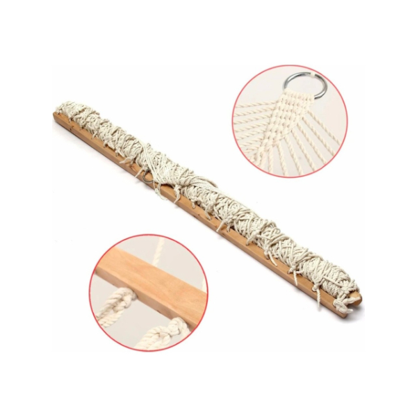 MAKROME İP LÜKS TEK KİŞİLİK HAMAK  Ürün Özellikleri Sıradan hamaklardan sıkılanlar için lüks bir dinlenme deneyimi! Makrome İp Lüks Tek Kişilik Hamak, kalın ve sık dokulu özel makrome ip yapısıyla hem estetik bir görünüm hem de maksimum güven sağlar. 150 kg taşıma kapasitesi ile sınıfındaki en sağlam modellerden biri olan bu hamak, yetişkinlerin güvenle dinlenebileceği güçlendirilmiş bir yapıya sahiptir. Uç kısımlarında bulunan geniş ahşap denge çıtaları, hamağın vücudunuzu sıkıştırmasını engeller, geniş ve ferah bir yatış alanı sunar. Beyaz makrome örgüsüyle bahçenize, terasınıza veya balkonunuza modern bir hava katar. Yumuşak ip dokusu terletme yapmaz ve cildi tahriş etmez. Kamp maceralarınızda veya hafta sonu pikniklerinizde evinizdeki yatak konforunu doğaya taşımak için bu lüks hamak en ideal seçimdir. Ürün Teknik Özellikleri Özellik Açıklama Kapasite Lüks Tek Kişilik Tasarım Taşıma Kapasitesi Maksimum 150 kg (Ekstra Güçlendirilmiş) Malzeme Kalın ve Yumuşak Makrome İp Örgü Denge Sistemi Dolaşma Önleyici ve Genişletici Ahşap Destek Çıtaları Renk Doğal Ekru / Beyaz Kullanım Alanı Bahçe, Teras, Lüks Kamp Alanları, Veranda, Piknik Avantajı Yüksek Taşıma Gücü, Estetik Görünüm, Ferah Yatış Alanı Paket İçeriği 1 Adet Ahşap Çıtalı Makrome İp Lüks Tek Kişilik Hamak.