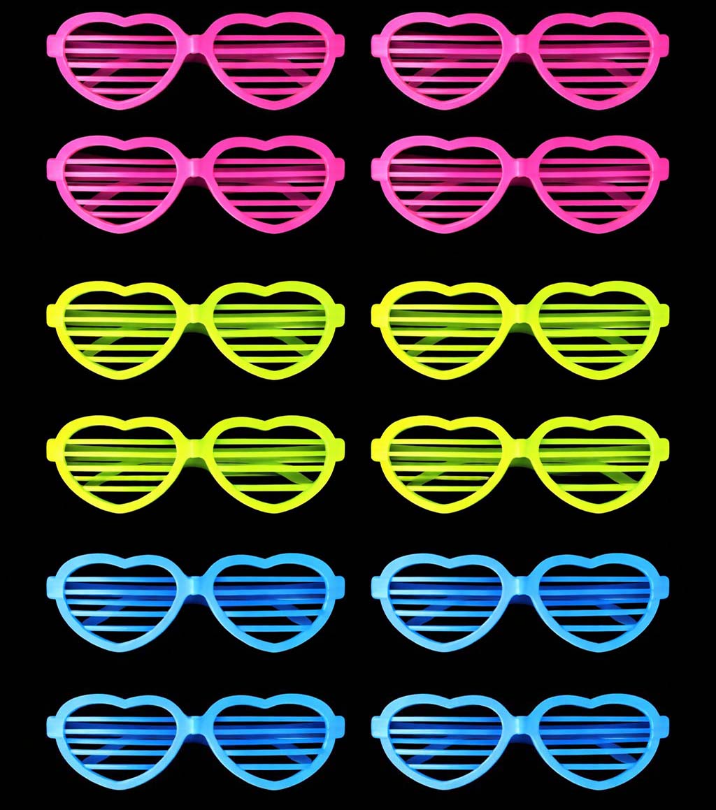 Retro Neon Fosforlu Kalp Panjur Gözlük - 12 Adet