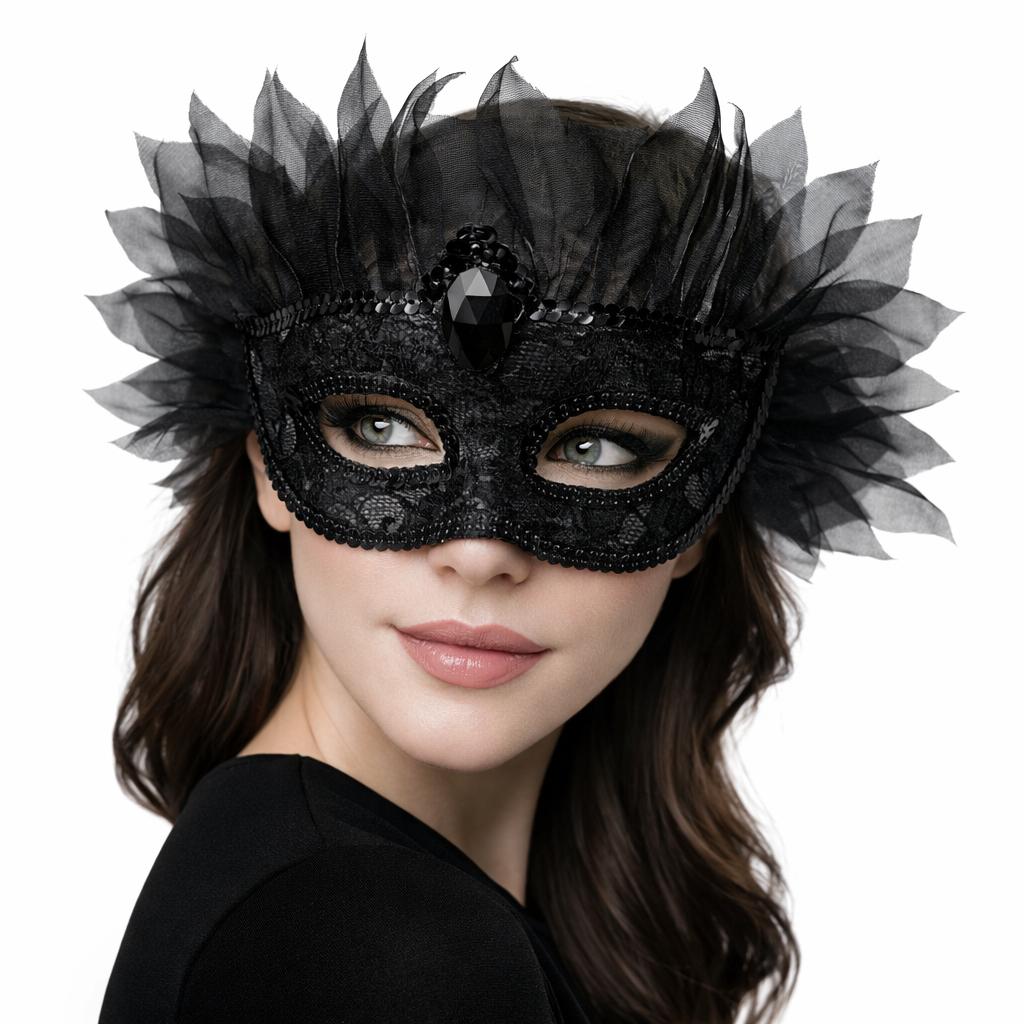 Siyah Taşlı Venedik Lüks Tüllü Parti Maskesi