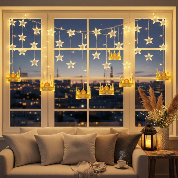 3 mt Fişli Sarı Cami Yıldız Ramazan Perde LED