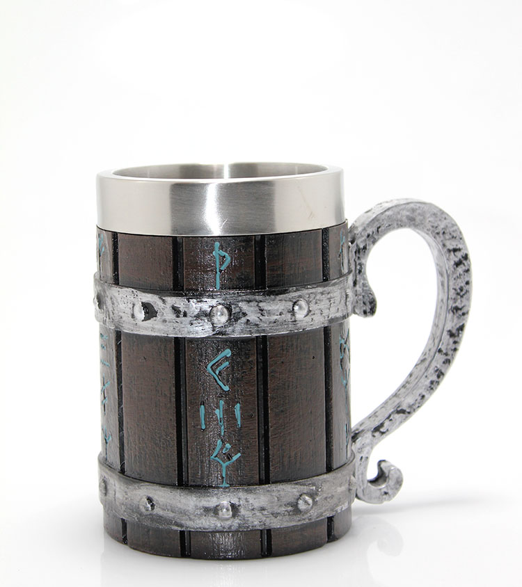 Korsan Temalı Ahşap Görünümlü 3D Kabartmalı Çelik Kupa Bardak
