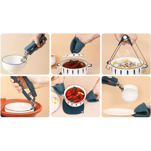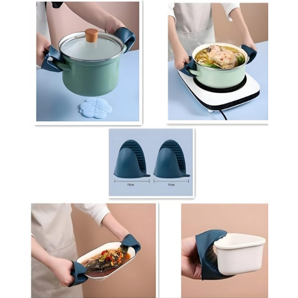 4 PARÇA YANMA ÖNLEYİCİ MUTFAK SETİ - TENCERE TABAK TUTUCU VE FIRIN ELDİVENİÜrün Özellikleri 4 parça yanma önleyici mutfak seti, mutfakta güvenli ve pratik kullanım sunar. Isıya dayanıklı silikon ve paslanmaz çelik malzemeden üretilmiştir. Setin içinde bulunan tencere ve tabak tutucu sayesinde sıcak kapları kolayca kavrayabilir, fırın eldivenleri ile elinizi yüksek ısıdan koruyabilirsiniz. Kaymaz yüzeyi sayesinde elden kayma riskini azaltır ve güvenli taşıma sağlar. Geniş kullanım alanına sahip olan bu set, tabak, tencere, tava ve kase gibi çeşitli mutfak gereçlerinde rahatlıkla kullanılabilir. Şık ve ergonomik tasarımı sayesinde hem ev kullanımı hem de profesyonel mutfaklar için idealdir. Bulaşık makinesinde yıkanabilir ve uzun ömürlü yapısıyla mutfakta vazgeçilmez bir yardımcıdır. Paket İçeriği 1 adet metal tencere tutucu, 1 adet metal tabak tutucu, 2 adet silikon fırın eldiveni2 adet silikon bulaşık fırçası