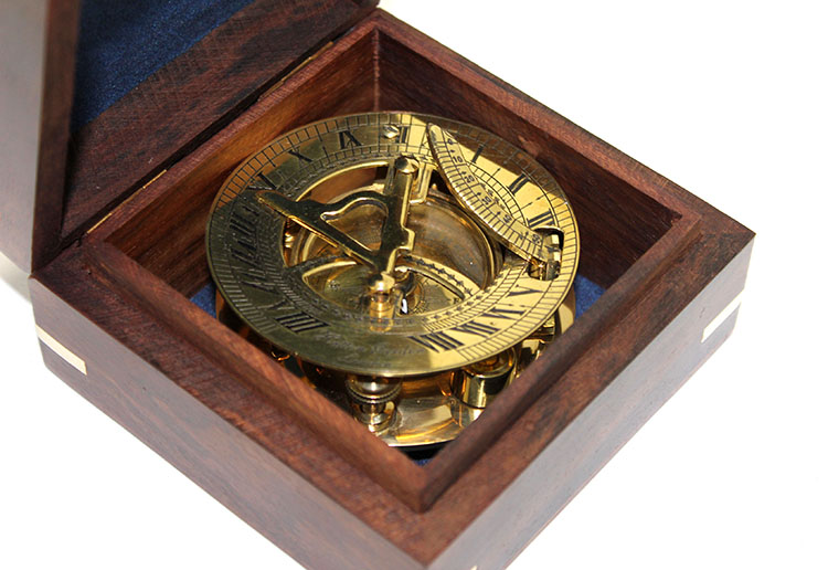 Ahşap Kutulu Pirinç Güneş Saati Ve Pusula Modeli