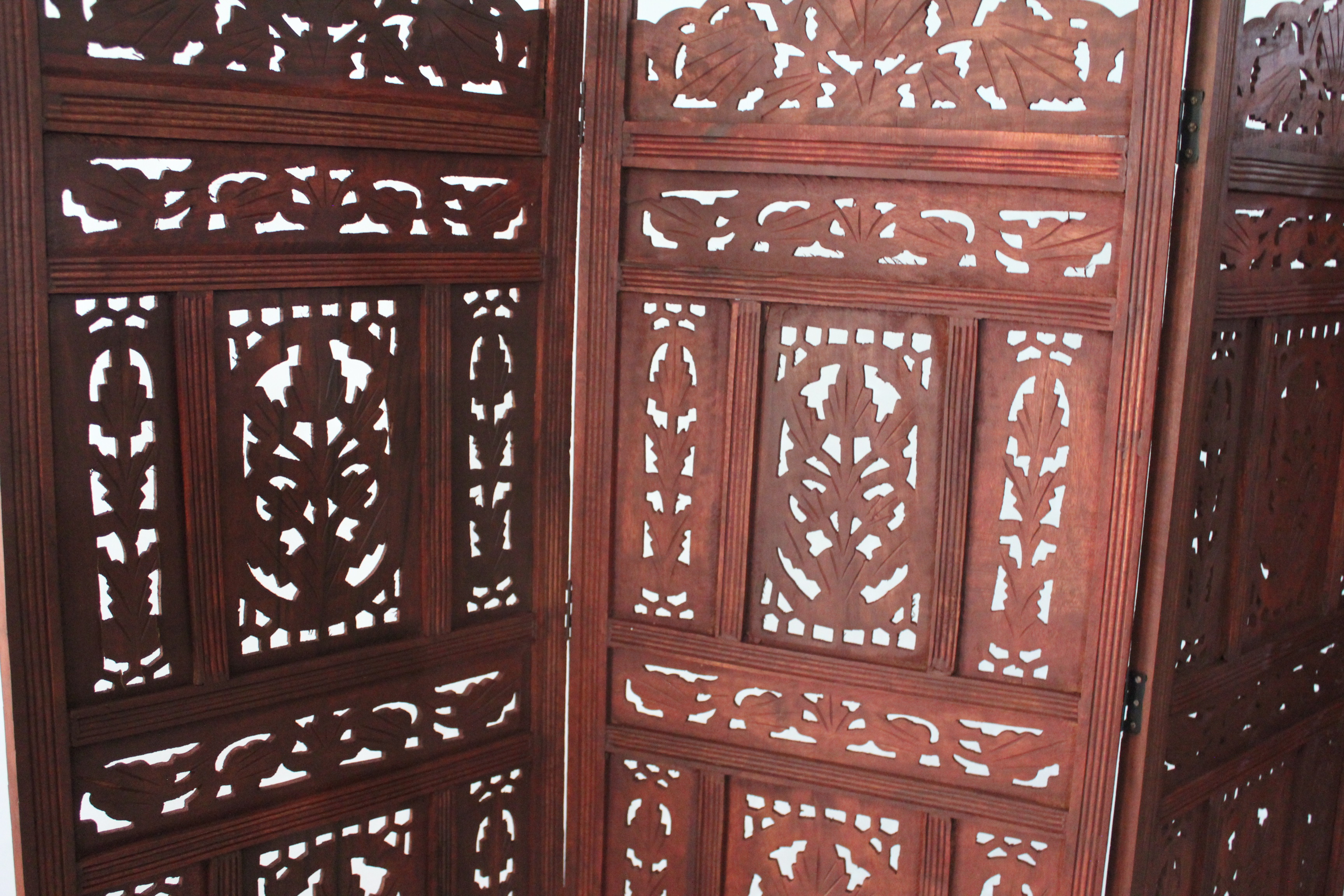 Ahşap Maun Rengi El Oyması Paravan
