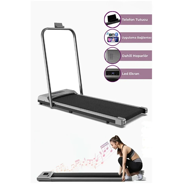 AKILLI KOŞU BANDIÜrün Özellikleri Akıllı Koşu Bandı, ev konforunda profesyonel koşu ve yürüyüş deneyimi sunmak için tasarlanmış modern ve teknolojik bir spor ekipmanıdır. Ultra sessiz motor yapısı sayesinde günün her saatinde çevreyi rahatsız etmeden spor yapmanıza olanak tanır. 120 kg taşıma kapasitesi ile geniş bir kullanıcı kitlesine hitap ederken, güçlü ve dengeli yapısı güvenli bir kullanım sağlar. Katlanabilir tasarımı sayesinde evde fazla yer kaplamaz ve kullanılmadığında kolayca kaldırılabilir. Üzerinde bulunan LED ekran hız, süre, mesafe ve kalori değerlerini anlık olarak takip etmenize yardımcı olur. Dahili hoparlör sistemi favori müziklerinizi açarak daha motive edici bir spor ortamı sunar. Akıllı uygulama bağlantısı ile kişisel antrenman verilerinizi kaydedebilir, gelişiminizi takip edebilir ve hedeflerinizi belirleyebilirsiniz. Telefon tutucu bölümü spor esnasında içerik izlemek, müzik dinlemek veya uygulamaları kontrol etmek için ekstra konfor sağlar. Minimalist ve modern tasarımı ile ev dekorasyonuna uyum sağlayarak yaşam alanınızı estetik bir spor alanına dönüştürür. Paket İçeriği 1 adet akıllı koşu bandı