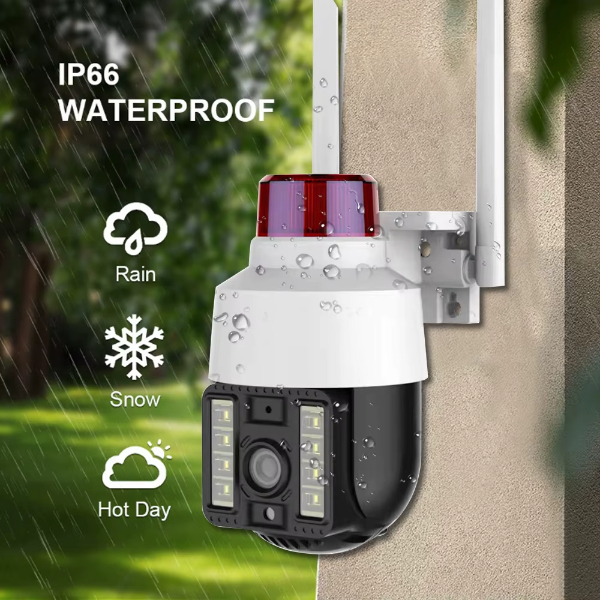 ALARMLI DIŞ MEKAN GÜVENLİK KAMERASIÜrün Özellikleri Alarmlı dış mekan güvenlik kamerası, 3MP HD çözünürlük ile net ve detaylı görüntüler sunar. Gece görüş özelliği tam renkli kayıt yapabilme imkânı verirken, hareket algılama fonksiyonu şüpheli durumlarda anında bildirim gönderir. Çift yönlü ses desteği sayesinde hem dinleme hem de konuşma yapılabilir. IP66 su geçirmezlik sertifikası sayesinde yağmur, kar ve güneş altında dayanıklı kullanım sağlar. H.265 sıkıştırma teknolojisi ile daha düşük veri kullanımı ve yüksek kalite bir arada sunulur. TF kart ve bulut depolama desteği ile kayıtlar güvenle saklanabilir.Alarm özelliği ile istenmeyen hareketlerde sesli uyarı vererek caydırıcı bir güvenlik sağlar. ONVIF / NVR uyumluluğu sayesinde farklı güvenlik sistemleri ile entegre edilebilir. Paket İçeriği 1 adet Alarmlı Dış Mekan Güvenlik Kamerası