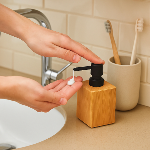 BÜYÜK AHŞAP SIVI SABUNLUKÜrün Özellikleri Büyük Ahşap Sıvı Sabunluk, doğal bambu ahşap tasarımı ile banyonuza veya mutfağınıza estetik ve modern bir dokunuş katar. 100 ml hacmiyle günlük kullanım için pratik bir çözüm sunar. Dayanıklı yapısı sayesinde uzun ömürlüdür ve paslanmaz pompa sistemi ile hijyenik bir kullanım sağlar. Minimalist tasarımı, her dekorasyon tarzına uyum sağlayarak yaşam alanlarınıza şıklık katar.Ahşap gövdesi sayesinde çevre dostu bir üründür. Pompaj mekanizması sıvı sabun, bulaşık deterjanı veya dezenfektan için kullanılabilir. Kompakt boyutu sayesinde lavabo kenarında fazla yer kaplamaz, şık ve düzenli bir görünüm oluşturur. Kullanımı kolay olan bu sabunluk, hem ev hem de ofis ortamları için ideal bir üründür. Paket İçeriği 1 adet Büyük Ahşap Sıvı Sabunluk