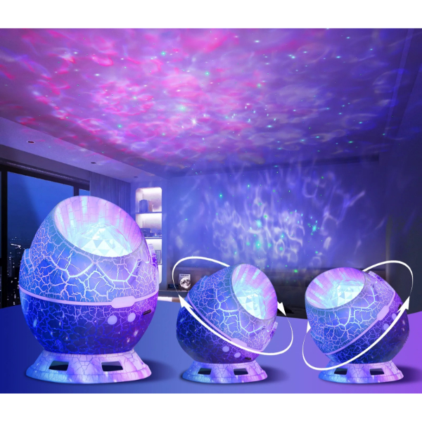 Çatlak Dinozor Yumurtası Tasarımlı Projektörlü Gece Lambası Bluetooth Özellikli