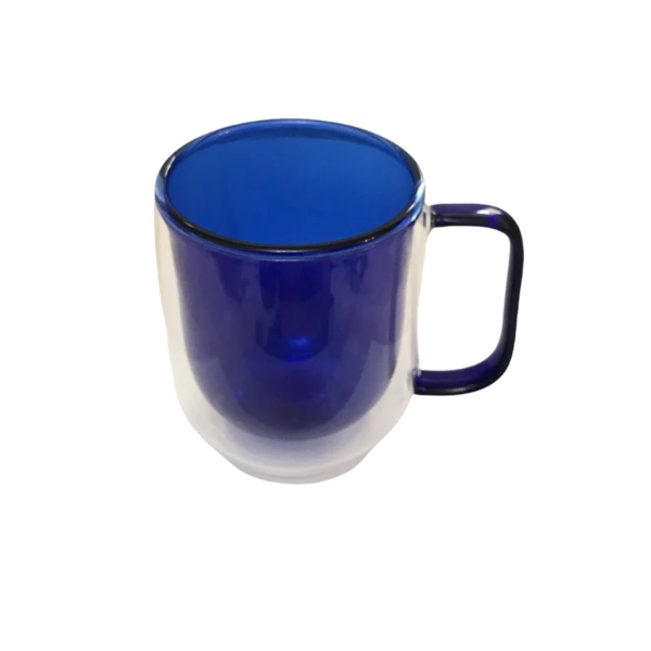 Çift Cidarlı Cam Kupa Lacivert Renk