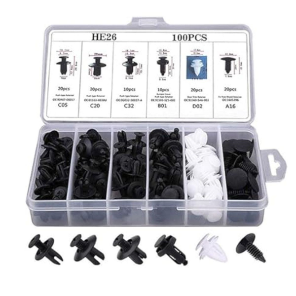 ÇOK AMAÇLI PLASTİK BAĞLANTI KLİPSİ SETİ 100 PARÇAÜrün Özellikleri Çok amaçlı plastik bağlantı klipsi seti 100 parça, araç bakım ve onarım işlemlerinde pratik, düzenli ve güvenilir bir kullanım sunmak üzere farklı ölçü ve tiplerde oto klipsi ile plastik perçinleri bir araya getirir. Tampon, kapı döşemesi ve trim parçalarının sabitlenmesinde ideal olan bu set, araç iç ve dış plastik aksamların montaj ve yenileme işlemlerinde geniş uyumluluk sağlar. Oto tampon ve çamurluk bağlantıları, kapı döşemeleri, iç trim parçaları, motor kaputu ve bagaj içi kaplamalar gibi birçok alanda güvenle kullanılabilir. Yüksek kaliteli plastikten üretilen klips ve perçinler darbelere ve titreşime karşı dayanıklıdır, uzun süreli kullanımda gevşeme yapmadan sağlam tutuş sunar. Özel tasarımı sayesinde klipsler kolayca takılıp sökülebilir ve bakım ile tamir süreçlerinde zamandan tasarruf sağlar. Setin bölmeli ve şeffaf saklama kutusu, parçaların karışmadan muhafaza edilmesine ve ihtiyaç duyulan klipse hızlıca ulaşılmasına imkân tanır. Ev kullanıcıları ve profesyonel oto servisleri için düzenli ve taşınabilir bir çözüm sunar. Paket İçeriği 100 parça çok amaçlı plastik bağlantı klipsi ve perçin seti