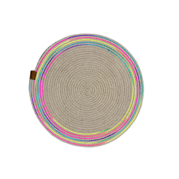 DecoHandy 39cm Neon Renkli Şeritli Jüt Örme Supla Amerikan Servis