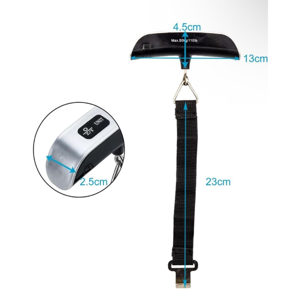 ELEKTRONİK EL BAGAJ - VALİZ TARTISI Ürün Özellikleri Elektronik el bagaj tartısı, seyahatlerinizde valizlerinizi kolayca tartmanıza yardımcı olacak küçük ve hafif bir cihazdır. 50 kg'a kadar ölçme kapasitesine sahip olan bu tartı, taşınması ve kullanımı son derece kolaydır. 13x3,5 cm boyutları ile kompakt ve pratik bir tasarıma sahiptir. Seyahat ederken bagajınızın ağırlığını öğrenmek, havayolu şirketlerinin bagaj kurallarına uymanızı sağlamak için idealdir. LCD ekranı sayesinde tartı sonuçlarını kolayca okuyabilirsiniz. Hem evde hem de seyahatte kullanıma uygun, dayanıklı ve pratik bir üründür. Paket İçeriği 1 Adet Elektronik El Bagaj - Valiz Tartısı