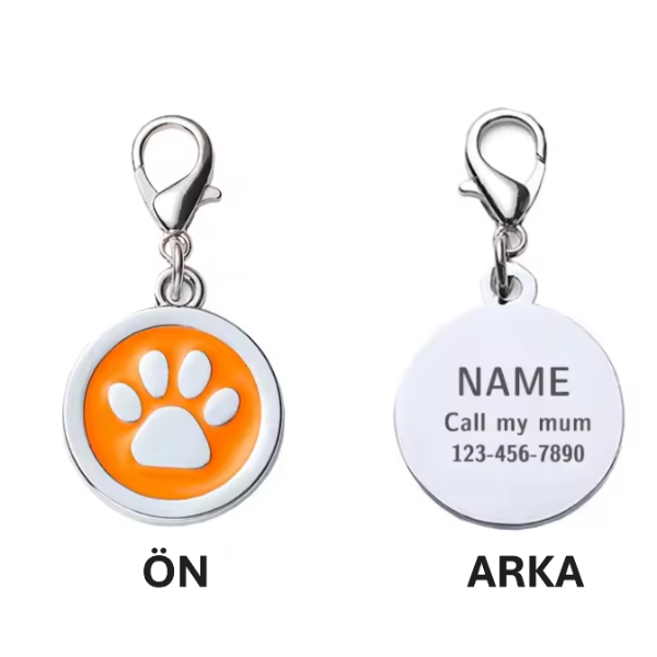 EVCİL HAYVAN KLİPSLİ TASMA KÜNYESİÜrün Özellikleri Evcil Hayvan Klipsli Tasma Künyesi, 2.5 cm boyutuyla hem hafif hem de dayanıklı bir yapıya sahiptir. Ön yüzünde sevimli patili tasarım bulunurken, arka yüzü tamamen boştur ve isteğinize göre isim, telefon numarası veya özel bir notla kolayca özelleştirilebilir. Klips mekanizması sayesinde tüm kedi ve köpek tasmalarına hızlıca takılabilir. Kaybolma riskine karşı güvenli bir çözüm sunar ve şık tasarımıyla evcil hayvanınızın tasmasına zarif bir dokunuş katar. Paket İçeriği 1 adet Klipsli Tasma Künyesi