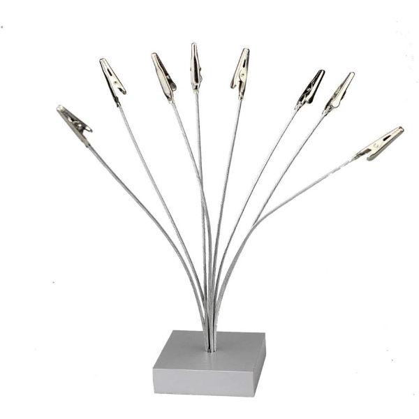 KAĞIT TUTACAĞI KISKAÇLIÜrün Özellikleri Masa düzeninizi korumanın en şık yollarından biri olan Kıskaçlı Kağıt Tutacağı, ofis, çalışma alanı veya resepsiyon masalarında pratik kullanım sağlar. 24x7 cm boyutlarındaki bu ürün, çoklu metal kıskaç sistemiyle notlarınızı, kartvizitlerinizi, fotoğraflarınızı veya önemli belgelerinizi düzenli şekilde sergilemenize imkân tanır. Esnek metal telleri sayesinde farklı yükseklik ve açıları kolayca ayarlayabilir, belgeleri estetik bir biçimde konumlandırabilirsiniz. Sağlam tabanı devrilmeyi önlerken, paslanmaz çelikten üretilmiş kıskaçları uzun ömürlü kullanım sunar. Minimalist ve modern tasarımıyla masa üstü dekorasyonuna da zarif bir dokunuş katar. Paket İçeriği 1 adet Kıskaçlı Kağıt Tutacağı
