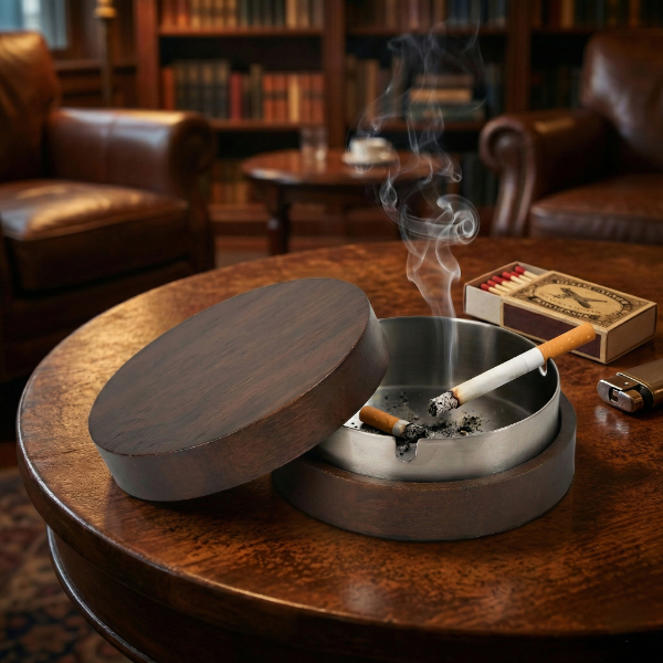 KAHVERENGİ BAMBU KAPAKLI KÜLLÜKÜrün Özellikleri Kahverengi bambu kapaklı küllük, doğal ahşap görünümü ve modern tasarımıyla yaşam alanlarına şıklık katan fonksiyonel bir masaüstü ürünüdür. Ürünün dış gövdesinde kullanılan koyu tonlu bambu kapak, dekoratif bir görünüm sunarken aynı zamanda küllüğün kullanılmadığı anlarda kül ve koku yayılımını azaltmaya yardımcı olur. İç kısmında yer alan metal küllük haznesi, sigara külü ve izmaritlerin güvenli ve düzenli şekilde toplanmasını sağlar. Kapaklı tasarım sayesinde masa üzerinde daha temiz ve düzenli bir görüntü elde edilir. Küllük iç haznesinde bulunan sigara yerleştirme kanalları, kullanım sırasında sigaranın sabit durmasına katkı sağlar ve kül dökülmesini önler. 4x11 cm kompakt ölçüsü sayesinde masa, balkon, teras, ofis ve kafe gibi alanlarda yer kaplamadan rahatlıkla kullanılabilir. Metal iç haznesi temizlik işlemini pratik hale getirirken bambu kapak uzun süreli kullanım için dayanıklı bir yapı sunar. Hem estetik hem de kullanışlı bir küllük arayan kullanıcılar için ideal bir seçenektir. Paket İçeriği 1 adet kahverengi bambu kapaklı küllük