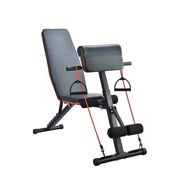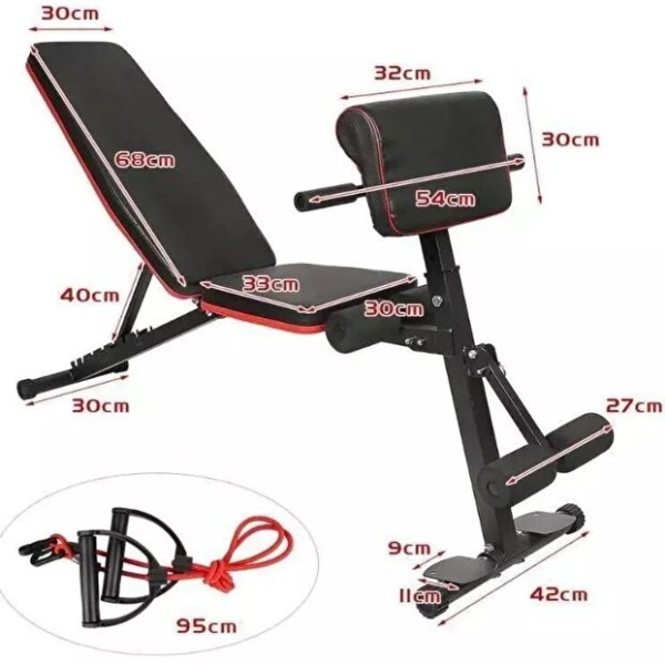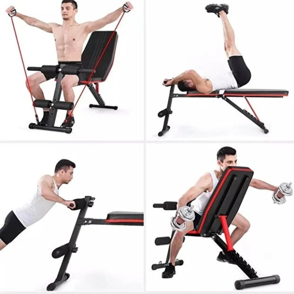 KATLANABİLİR AYARLANABİLİR MEKİK VE AĞIRLIK SEHPASIÜrün Özellikleri Katlanabilir Ayarlanabilir Mekik ve Ağırlık Sehpası, evde spor yapmak isteyen kullanıcılar için profesyonel spor salonu konforunu sunan çok fonksiyonlu bir egzersiz ekipmanıdır. Dayanıklı çelik gövdesi ve yüksek yoğunluklu sünger pedleri sayesinde uzun süreli antrenmanlarda maksimum konfor sağlar. Sırt dayanağı çok kademeli olarak ayarlanabilir yapısıyla mekik, ters mekik, dumbbell press, shoulder press ve daha birçok üst–alt vücut egzersizini tek bir sehpa üzerinde yapabilme imkânı sunar. Ek olarak dahili direnç bantları kol, omuz ve sırt çalışmalarını destekleyerek antrenman çeşitliliğini artırır. Ürün tamamen katlanabilir yapısıyla kullanım sonrası kolayca kaldırılabilir ve dar alanlarda bile rahatça saklanabilir. Kaymaz ayak yapısı antrenman sırasında zemine zarar vermezken güvenli bir kullanım sağlar. Hem başlangıç seviyesindeki sporcular hem de düzenli antrenman yapan kullanıcılar için ideal olan bu sehpada ergonomi ve sağlamlık bir araya gelerek evde spor deneyimini üst seviyeye taşır. Paket İçeriği 1 adet katlanabilir ayarlanabilir mekik ve ağırlık sehpası