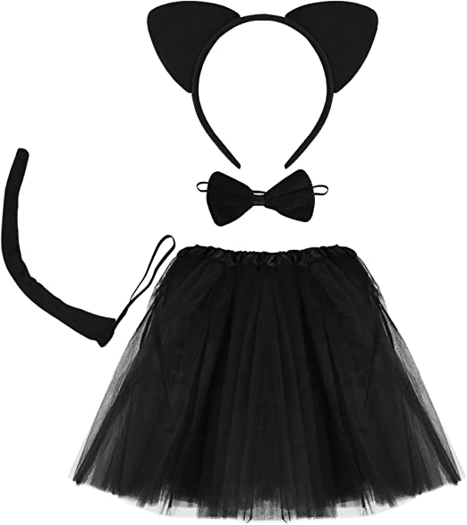 Kedi Kostüm Seti - Etek, Taç, Kuyruk ve Papyon Siyah Renk Çocuk Boy