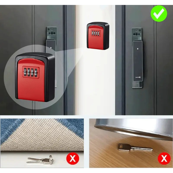 KIRMIZI ŞİFRELİ ANAHTAR VE EŞYA SAKLAMA GÜVENLİK KASASIÜrün Özellikleri Kırmızı şifreli anahtar ve eşya saklama güvenlik kasası, ev, yazlık, ofis veya Airbnb dairelerinde güvenli anahtar teslimatı için tasarlanmıştır. 10 cm x 7 cm ölçülerinde ve 3,5 cm derinliğe sahip olan bu kasa, dört haneli şifreli mekanizması ile binlerce farklı kombinasyon seçeneği sunar. Sert plastik malzemeden üretilmiş olup, paslanmaz yapısıyla zorlu hava koşullarına karşı dayanıklıdır. Şifre değiştirme özelliği sayesinde güvenliğinizi kolayca güncelleyebilirsiniz. Şifre belirlemek ve değiştirmek için kasa açıkken şifre pimini B konumuna getirip şifreyi belirleyin pimi A konumuna getirdiğinizde artık yeni şifre geçerli olacaktır.Anahtarınızı içine koyarak güvenle saklayabilir, şifreyi bilen kişilerin kolayca erişmesine imkan tanıyabilirsiniz. Özellikle dış mekanlarda pratik kullanım imkânı sağlar. Paket İçeriği 1 adet Kırmızı Şifreli Anahtar ve Eşya Saklama Güvenlik Kasası