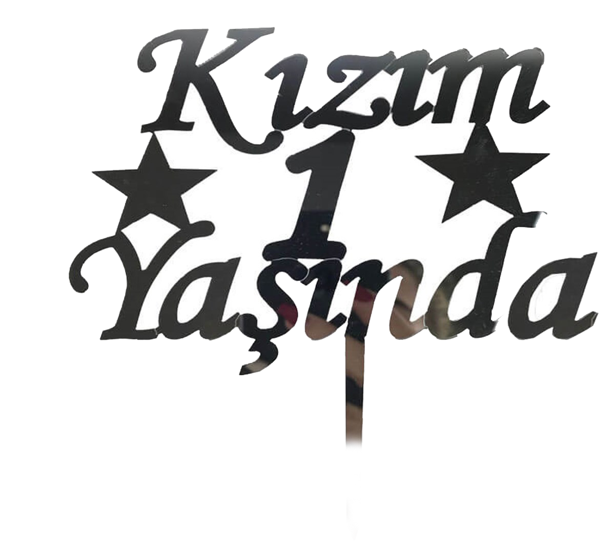 Kızım 1 Yaşında Yazılı Pasta Süsü Gümüş Renk