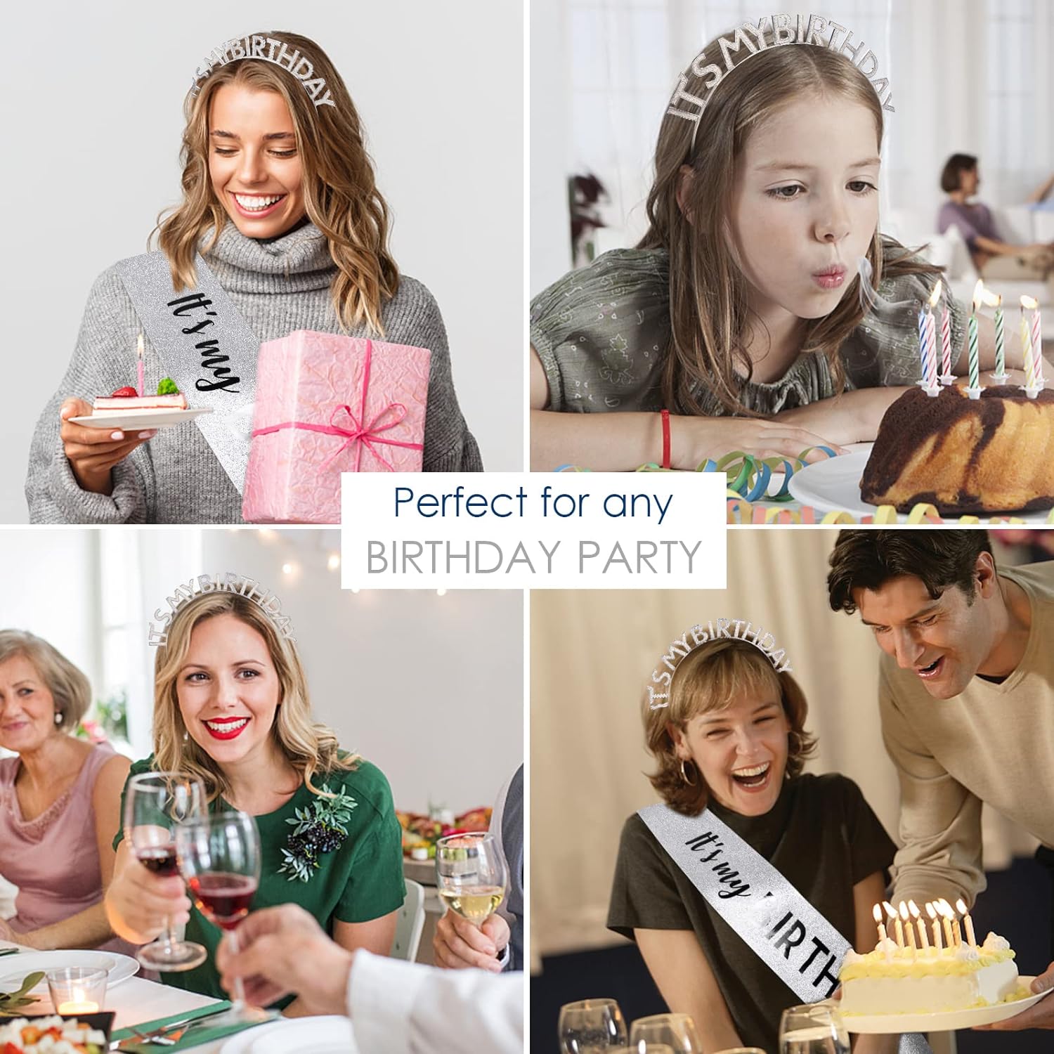 Kristal Taşlı Gümüş Renk Doğum Günü Tacı
