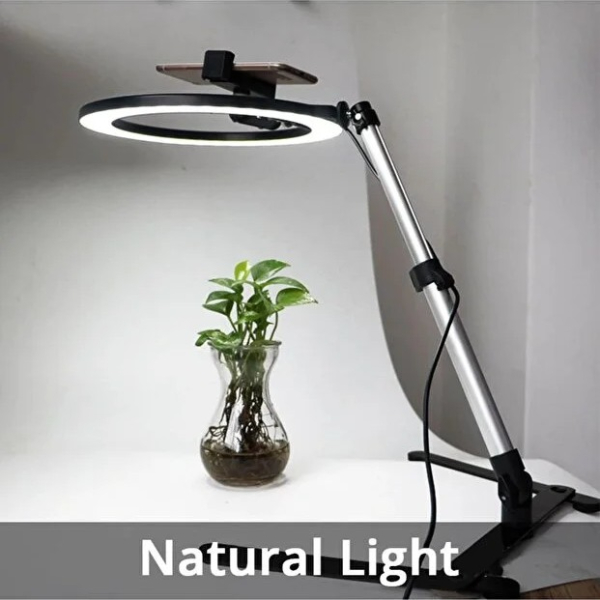 MASAÜSTÜ ÇEKİM IŞIĞI Ürün Özellikleri Masaüstü çekim ışığı, içerik üreticileri, online satış yapanlar ve günlük kullanımda net aydınlatma ihtiyacı duyanlar için pratik ve profesyonel bir çözüm sunar. I şeklindeki ayak tasarımı sayesinde masa üzerinde minimum alan kaplar ve dengeli bir kullanım sağlar. Yüksekliği ayarlanabilir yapısı ile 25 ila 45 cm arasında konumlandırılabilir, böylece farklı çekim açılarına ve masa düzenlerine kolayca uyum sağlar. 180 derece dönebilen başlığı sayesinde ışık açısı istenilen yönde ayarlanabilir ve homojen bir aydınlatma elde edilir. Ayarlanabilir telefon klipsi, farklı telefon modelleriyle uyumlu olup 180 derece hareket kabiliyeti sunarak video, fotoğraf, canlı yayın ve görüntülü görüşmelerde ideal çekim açısını yakalamanıza yardımcı olur. Masaüstü kullanım için tasarlanan bu çekim ışığı, ürün çekimleri, sosyal medya içerikleri, makyaj videoları ve online toplantılar için net, gölgesiz ve dengeli bir ışık sağlar. Dayanıklı gövdesi ve kolay kurulum özelliği sayesinde hem evde hem ofiste uzun süreli kullanım için uygundur. Paket İçeriği1 adet Masaüstü Çekim Işığı