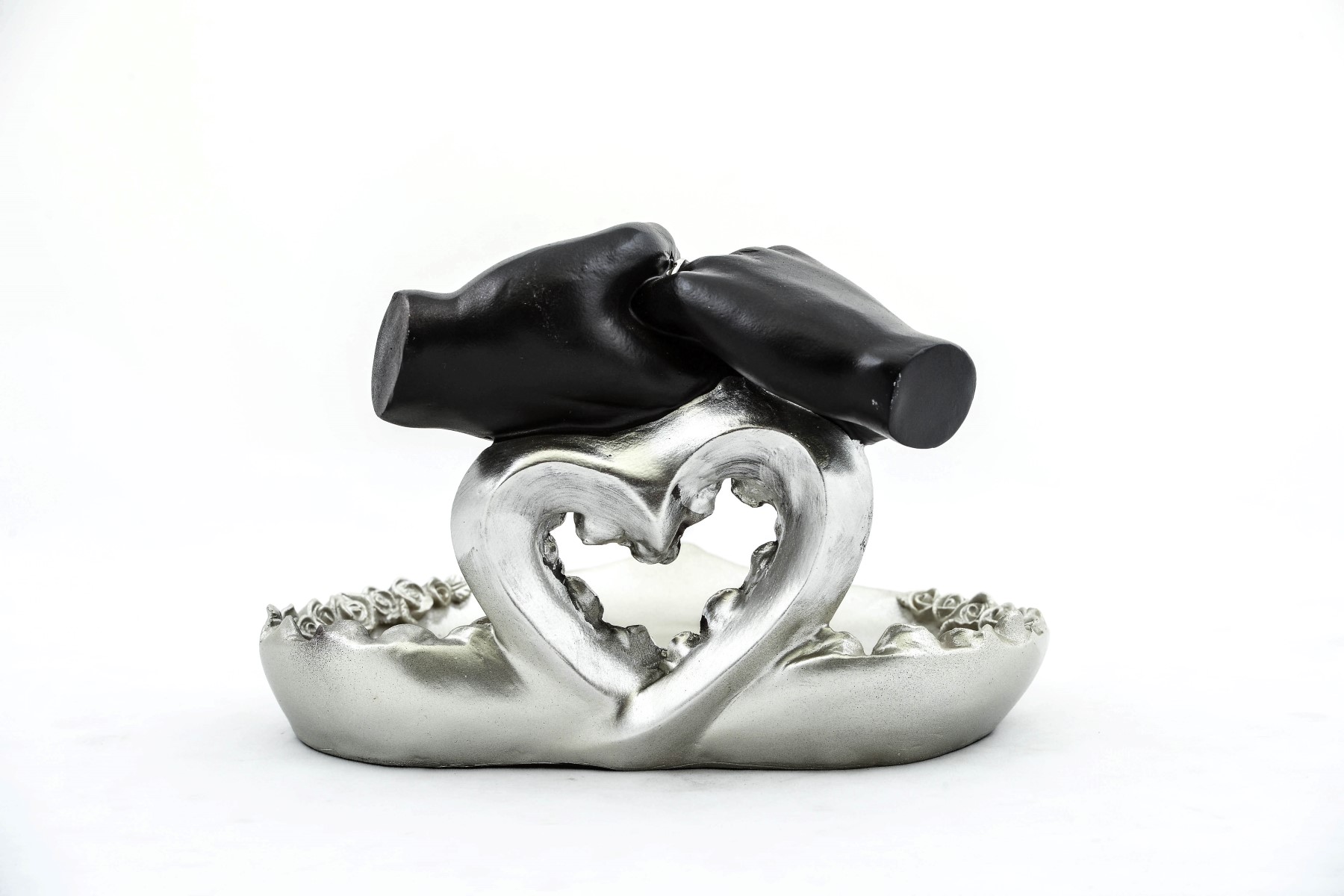 ÖZEL TASARIM KALPLİ POLYESTER SUNUM TEPSİSİ Ürün Özellikleri Modern bir tasarıma sahip olan bu özel tasarım kalpli sunum tepsisi, şık ve estetik detaylarla tamamlanmıştır. 23x16 cm boyutunda, siyah ellerin ve gümüş renkli gül motiflerinin birleşimiyle tasarlanmış olan bu obje, hem görsel açıdan etkileyici hem de dekoratif açıdan dikkat çekicidir. Polyester malzemeden üretilen bu sunum tepsisi, zarif yapısı ile sofralarınızı ve iç mekan dekorasyonunuzu zenginleştirir. Hem şık bir hediye hem de eşsiz bir koleksiyon parçası olarak kullanılabilir. Paket İçeriği 1 Adet Özel Tasarım Kalpli Polyester Sunum Tepsisi