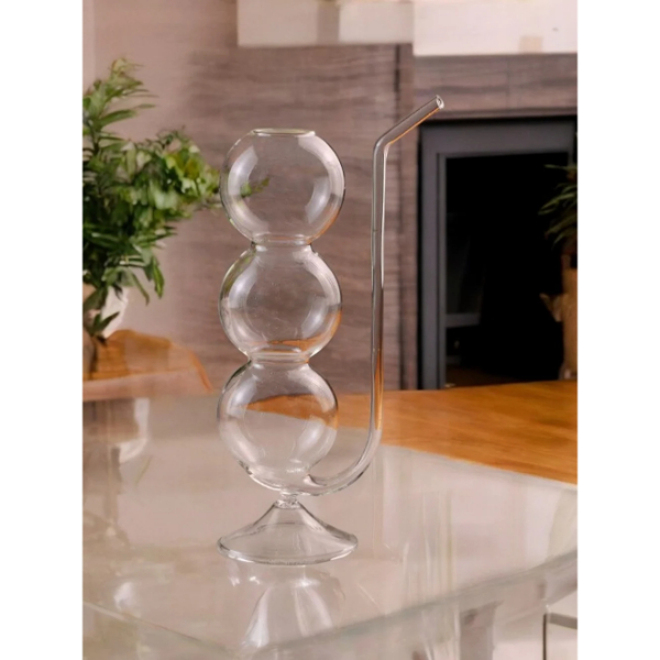PİPETLİ BOĞUMLU CAM BARDAKÜrün Özellikleri Estetik ve sıra dışı tasarımıyla dikkat çeken pipetli boğumlu cam bardak, içecek sunumlarına şıklık ve eğlence katmak isteyenler için ideal bir üründür. Üç adet bombeli boğumdan oluşan gövdesi ve entegre cam pipeti ile farklı bir içim deneyimi sunar. Soğuk içecekler, kokteyller, aromalı içecekler ve meyve suları için kullanıma uygundur. Cam malzemeden üretilmiştir ve şeffaf yapısı sayesinde içeceğin rengi şık bir şekilde sergilenir. Özel davetlerde, pikniklerde veya günlük kullanımlarda fark yaratır. El yapımı havası ve özgün formuyla dikkat çeker. Paket İçeriği 1 Adet Pipetli Boğumlu Cam Bardak