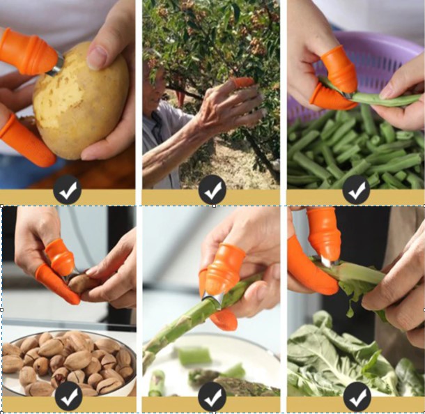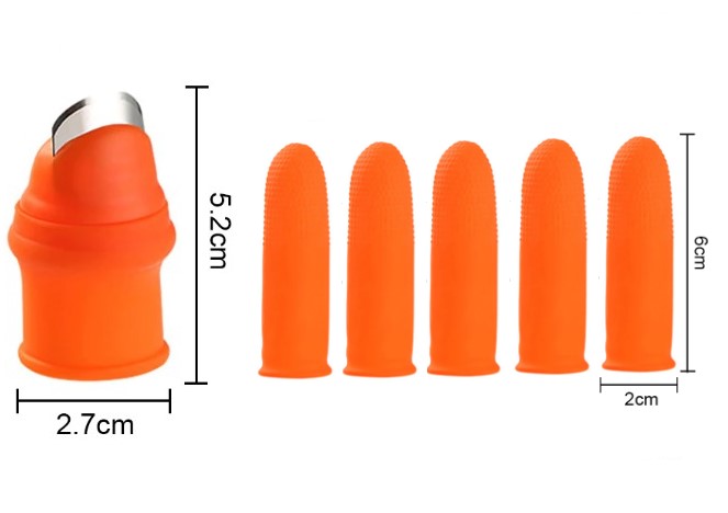 Baş parmak koruyucu soyucu ayıklayıcı kesme eldiveni bahçede, mutfakta sebze meyveleri soymak için kullanılır.Bahçe işlerinizde meyve sebze koparırken parmaklarınızı korur ve kesip koparmanıza yardımcı olurMutfakta sarımsak, sebze ve benzerlerini soymak için kullanılırGiyilebilir kısmı kaliteli silikon malzemeden üretilmiştirL Beden Set Boyutlar: 3.1*5.2*2.4cm Baş Parmak6cm * 2cm 5 Adet Orta Parmak