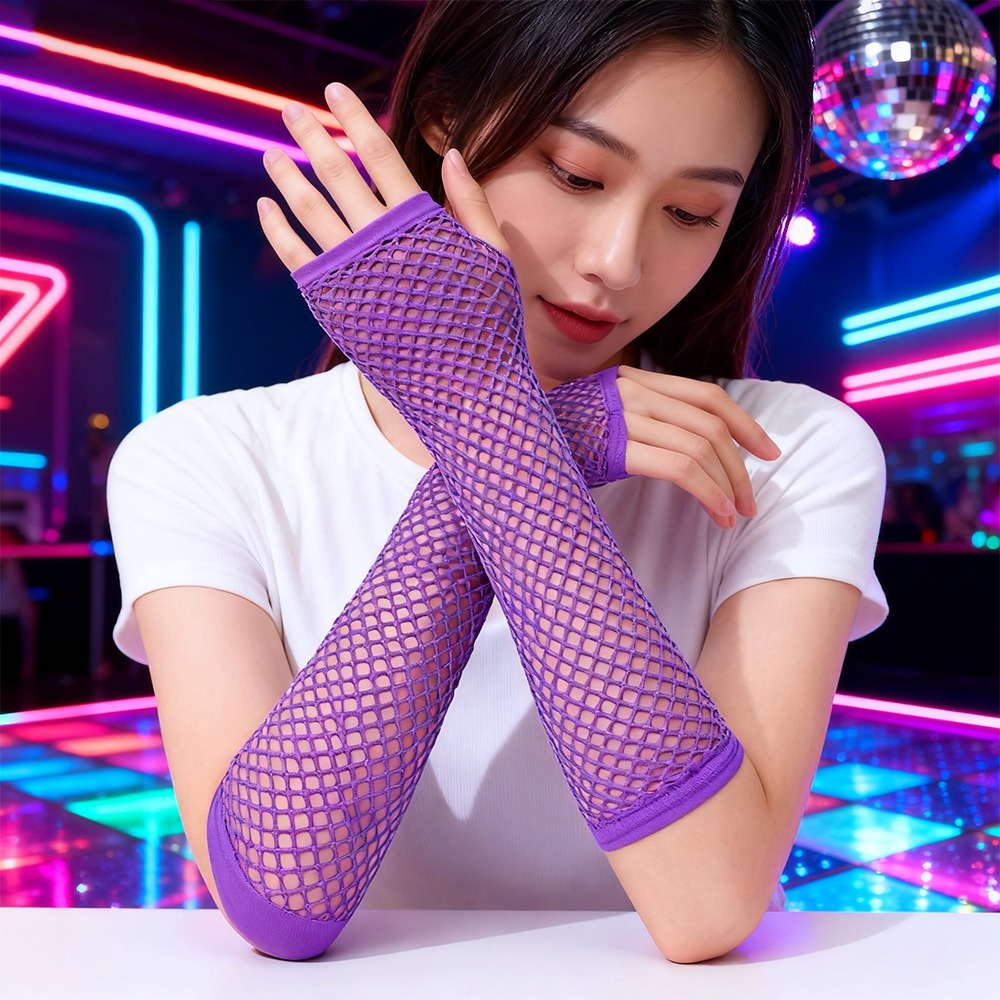RETRO MOR FİLE PARMAKSIZ ELDİVEN 26 CM Ürün Özellikleri Retro mor file parmaksız eldiven, çarpıcı rengi ve klasik file dokusuyla kostüm ve sahne kombinlerine güçlü bir stil dokunuşu kazandırır. 26 cm uzunluğu sayesinde bilekten kola doğru zarif ve dikkat çekici bir görünüm sunarken, parmaksız tasarımı el ve parmak hareketlerini özgür bırakarak dans, sahne performansı ve etkinliklerde konforlu kullanım sağlar. Esnek ve hafif file yapısı farklı kol ölçülerine kolayca uyum gösterir ve uzun süreli kullanımlarda rahatsızlık vermez. Canlı mor tonu, ışık altında öne çıkarak fotoğraf çekimlerinde ve sahnede etkileyici bir görsel oluşturur. Özellikle 80’ler ve 90’lar temalı partiler, kostüm etkinlikleri, konserler, kulüp geceleri ve konsept fotoğraf çekimleri için kombinleri tamamlayan iddialı bir aksesuardır. Retro ruhu modern bir görünümle birleştiren bu eldiven, tarzını cesur ve enerjik şekilde yansıtmak isteyenler için ideal bir tercihtir. Paket İçeriği 1 adet Retro Mor File Parmaksız Eldiven 26 cm