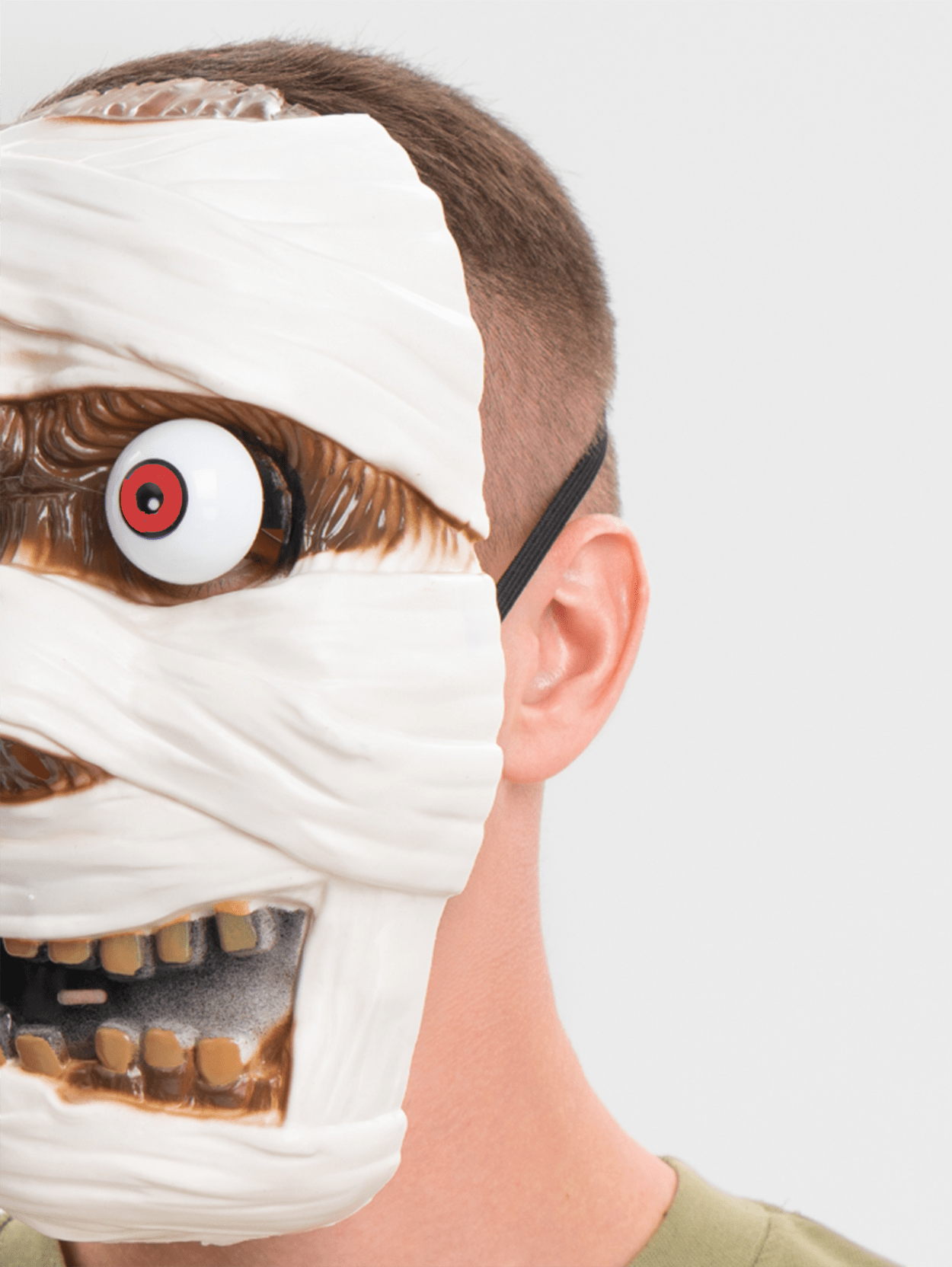 SALLANAN YAYLI OYNAR GÖZLÜ MUMYA MASKESİÜrün Özellikleri Sallanan Yaylı Oynar Gözlü Mumya Maskesi, korku temalı etkinlikler için mükemmel bir tercih olup, gerçekçi mumya görünümü ile dikkat çeker. Yaylı oynar gözleri sayesinde hareketli bir efekt sunar, bu da maskenin daha korkutucu ve canlı görünmesini sağlar. Ayarlanabilir baş bandı ile her kafa boyutuna uyum sağlar. Halloween, korku partileri veya cosplay etkinlikleri için idealdir. Paket İçeriği 1 Adet Sallanan Yaylı Oynar Gözlü Mumya Maskesi