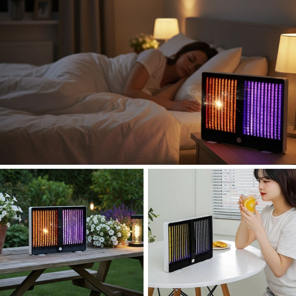 ŞARJLI SİVRİSİNEK ÖLDÜRÜCÜ LAMBA UV IŞIKLIÜrün Özellikleri Şarjlı sivrisinek öldürücü lamba, güçlü UV ışık teknolojisi sayesinde sivrisinekleri ve uçan haşereleri etkili biçimde kendine çekerek kimyasal kullanmadan yok edilmesini sağlar. Sessiz çalışma sistemi gece boyunca rahatsız etmeden çalışmasına imkân tanır ve yatak odası gibi alanlarda konforlu kullanım sunar. Şarjlı ve taşınabilir yapısı kablosuz kullanım kolaylığı sağlarken ev, balkon, bahçe, kamp alanı ve ofis gibi birçok ortamda pratik bir çözüm oluşturur. Kimyasal içermeyen, doğa dostu ve güvenli tasarımı ile sağlıklı bir yaşam alanı sunar. Kolay temizlenebilir sinek haznesi hijyenik kullanım avantajı sağlar. Ürün ölçüleri yaklaşık 29 cm genişlik, 21 cm yükseklik ve 3 cm derinliktedir; kompakt formu sayesinde az yer kaplar. Paket İçeriği 1 adet şarjlı UV ışıklı sivrisinek öldürücü lamba