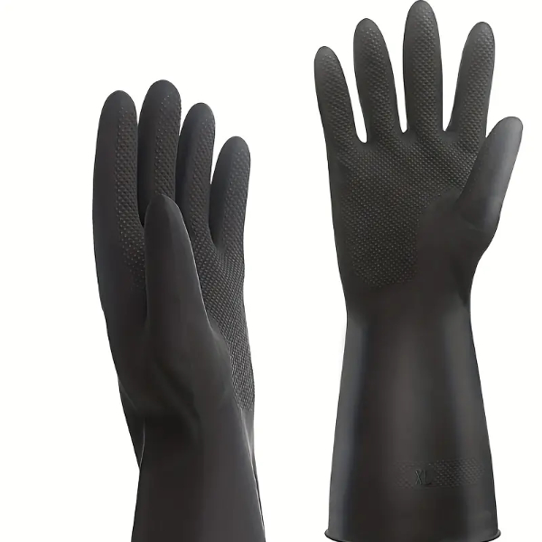 SİYAH RENKLİ ENDÜSTRİYEL ELDİVENÜrün Özellikleri Siyah renkli endüstriyel eldiven, üç katmanlı organik lateks malzemeden üretilmiştir ve organik pamuk pudralı astarı sayesinde ellerinizi terletmeden konforlu bir kullanım sunar. Kalın, esnek, yumuşak ve hassas yapısı ile elinizi tam olarak kavrayarak uzun süreli çalışmalarda dahi rahatlık sağlar. Dayanıklı yapısı sayesinde yıpranmaya karşı dirençlidir ve endüstriyel alanlarda güvenli bir kullanım sunar. İnşaat şantiyeleri, bahçıvanlık, tarım, üretim, hayvancılık, temizlik, hijyen ve genel kullanım gibi pek çok farklı alanda kullanılabilir. Çok yönlü yapısı ile pratik bir koruyucu çözüm sunan eldiven, kullanıldıktan sonra ılık su ile yıkanıp havlu ile durulanarak tekrar kullanılabilir. Paket İçeriği 1 çift siyah renkli endüstriyel eldiven