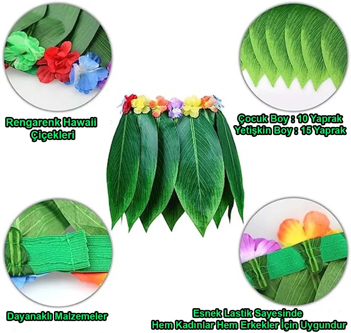TROPİKAL ESİNTİLİ YAPRAKLI PARTİ ETEĞİ ÇOCUK BOYÜrün ÖzellikleriTropikal esintili yapraklı parti eteği, çocuklar için özel olarak tasarlanmış renkli ve eğlenceli bir kostüm aksesuarıdır. Yumuşak ve rahat malzemeden üretilen bu etek, yaz partileri, kostüm etkinlikleri ve temalı doğum günü partileri için idealdir. Canlı yeşil yaprak detaylarıyla dikkat çeker ve çocuklara tropikal bir hava katar. Çocuk boyutunda olan bu etek, hareket özgürlüğü sunarak, her yaştan küçüklerin rahatça eğlenmesini sağlar.Paket İçeriği1 Adet Tropikal Esintili Yapraklı Parti Eteği Çocuk Boy